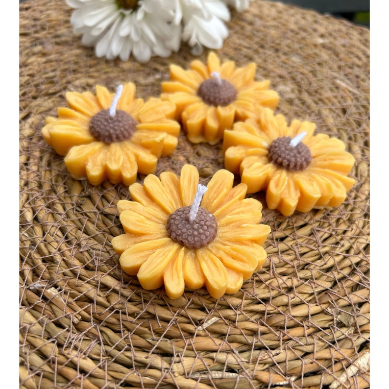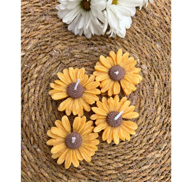 Nến hình hoa hướng dương xinh xắn, làm từ sáp đậu nành tự nhiên, thích hợp làm quà tặng khách mời trong baby shower, tiệc cưới, sinh nhật hoặc trang trí bàn tiệc. Thiết kế nổi 3D đẹp mắt, mùi thơm dịu, sẵn sàng tặng ngay.